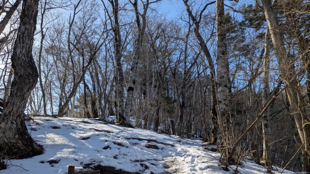 ちょっと急登だけど、軽めのバリエーションルートから登頂を狙います。その後は歩きやすい周遊ルートから河口湖を見下ろし最高の富士山ビューで有名なFUJIYAMAツインテラスを経由し、最後は再び登山道とは呼べないほぼ埋まった登山道跡から下山します。